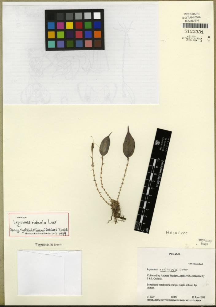 Lepanthes ridicula Luer, Monogr. Syst. Bot. Missouri Bot. Gard. 76: 168. 1999.