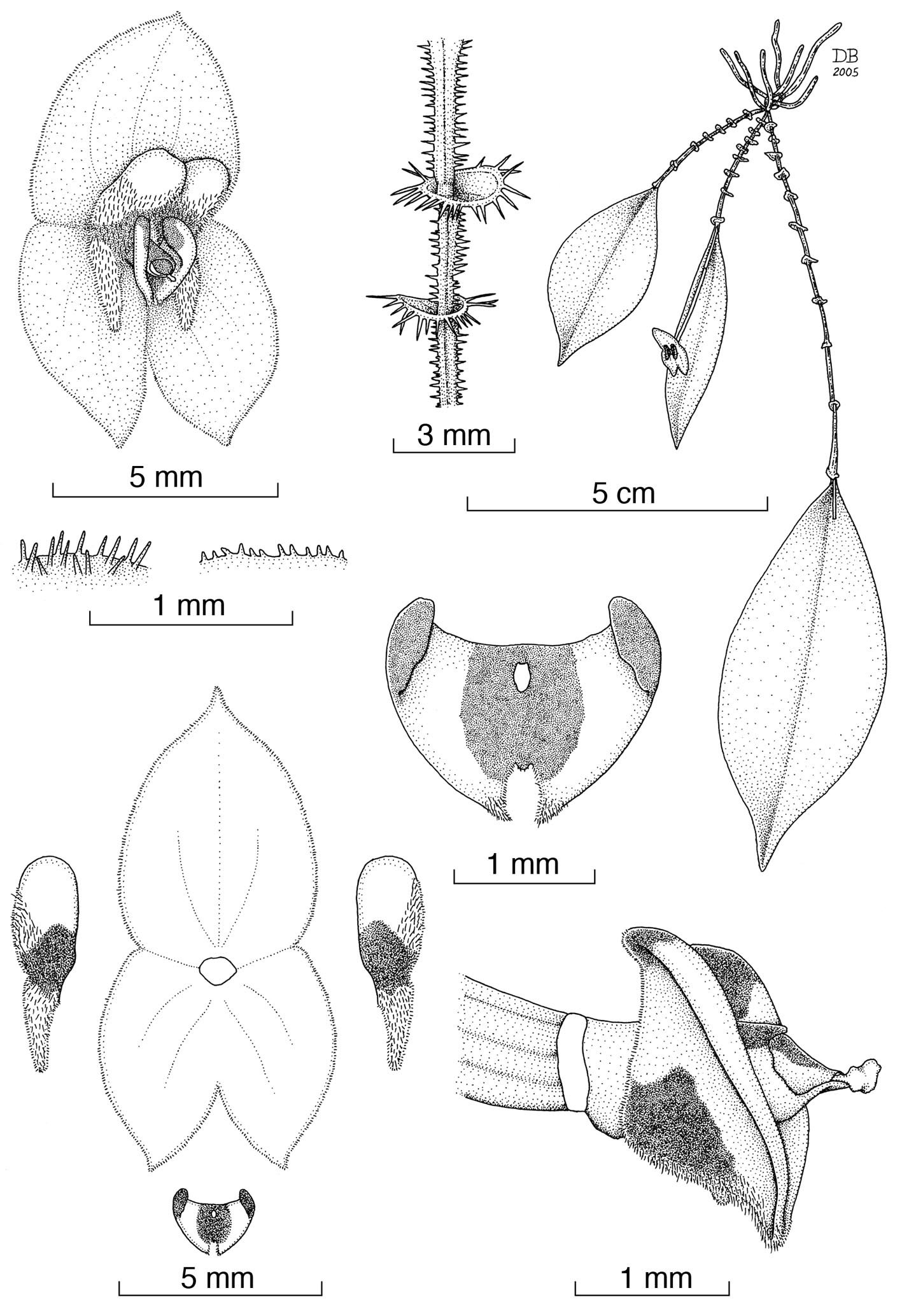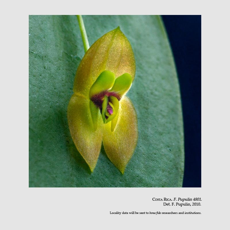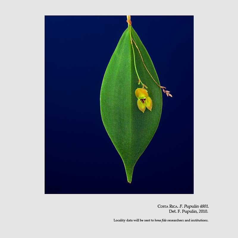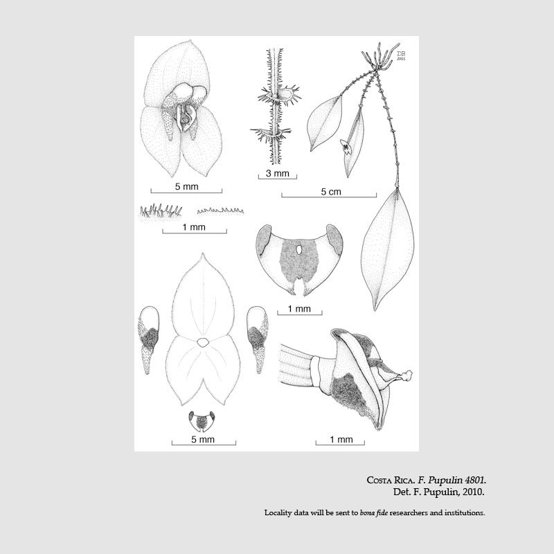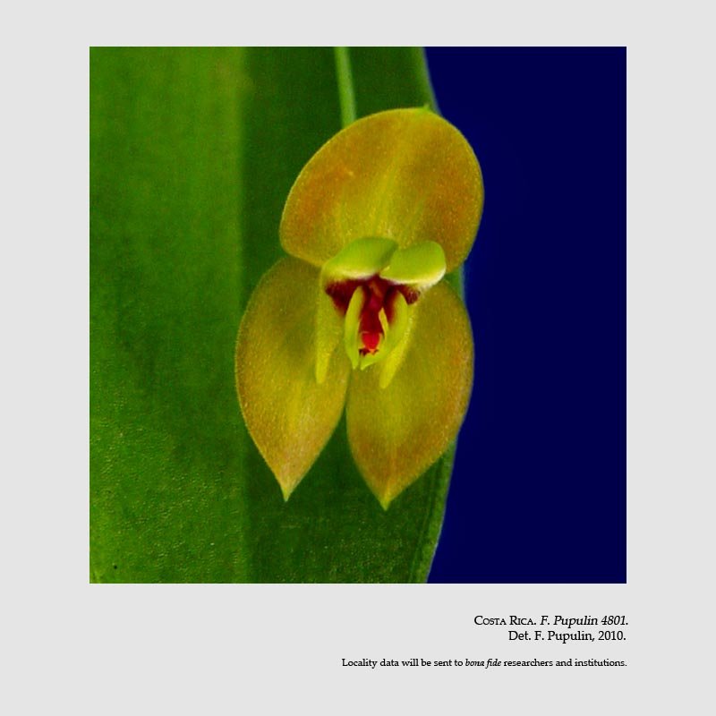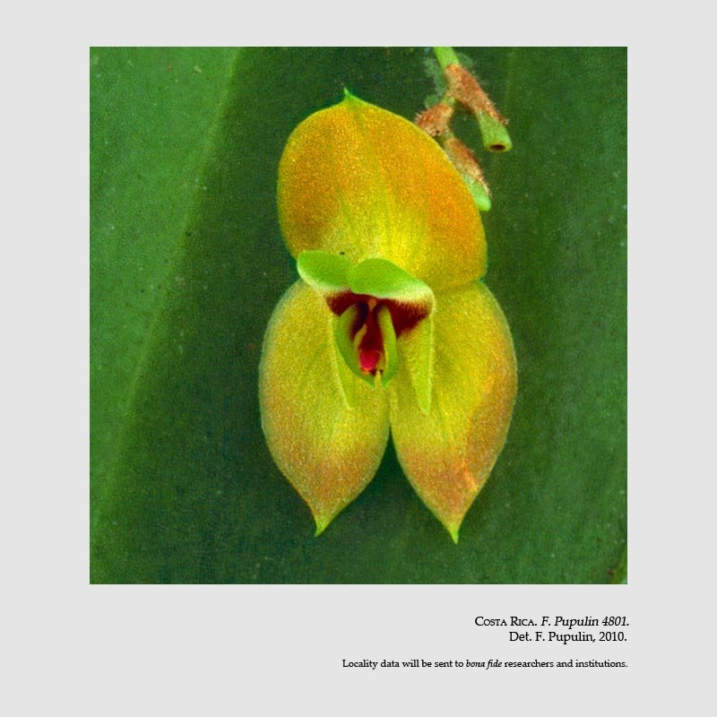 TYPE: Costa Rica. Turrialba: Tuis, Cien Manzanas, 9°51′25″N 83°33′47″W, ca. 3,117 feet (950 m), along a minor tributary of Río Pacuare, premontane wet forest, secondary vegetation and remnants of primary, May 26, 2003, F. Pupulin 4801, R. and K. Dressler, J. Aguilar, G. Gerlach, P. Kindlmann, H. León-Paéz, S. Pugh-Jones & E. Serrano (holotype, JBL-Spirit; illustration of type).