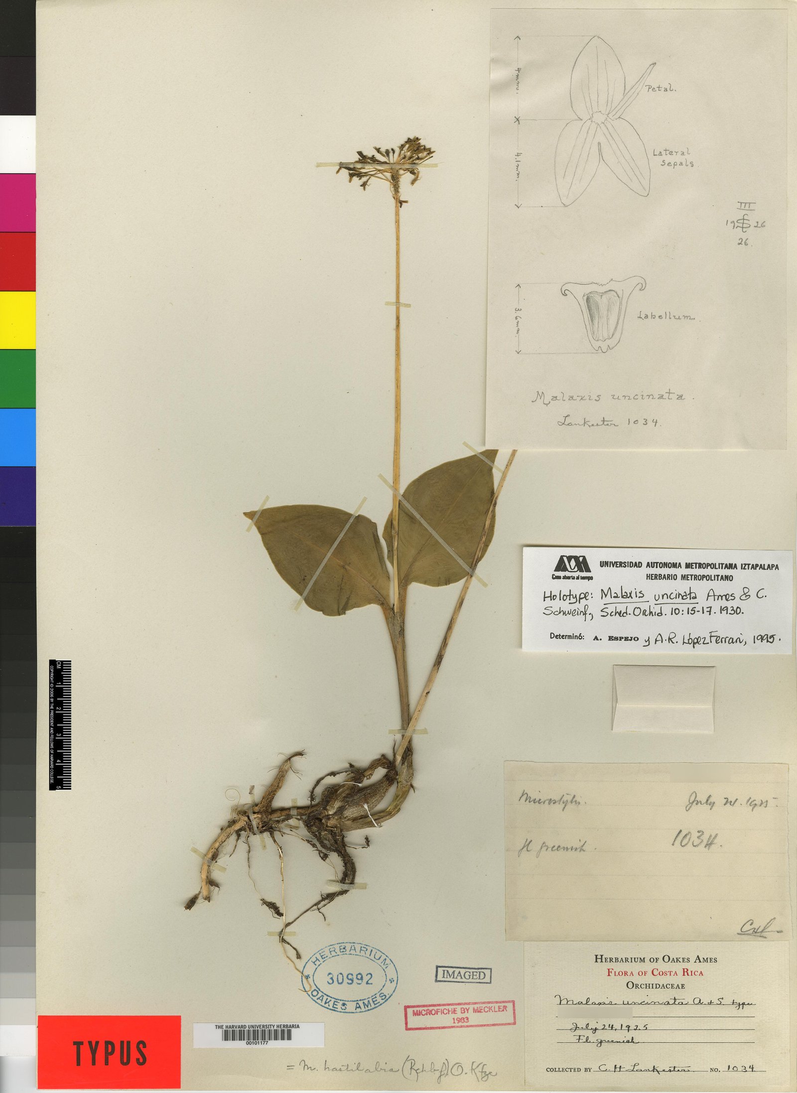 Malaxis uncinata Ames & C. Schweinf., Schedul. Orch. 10: 15-17. 1930.