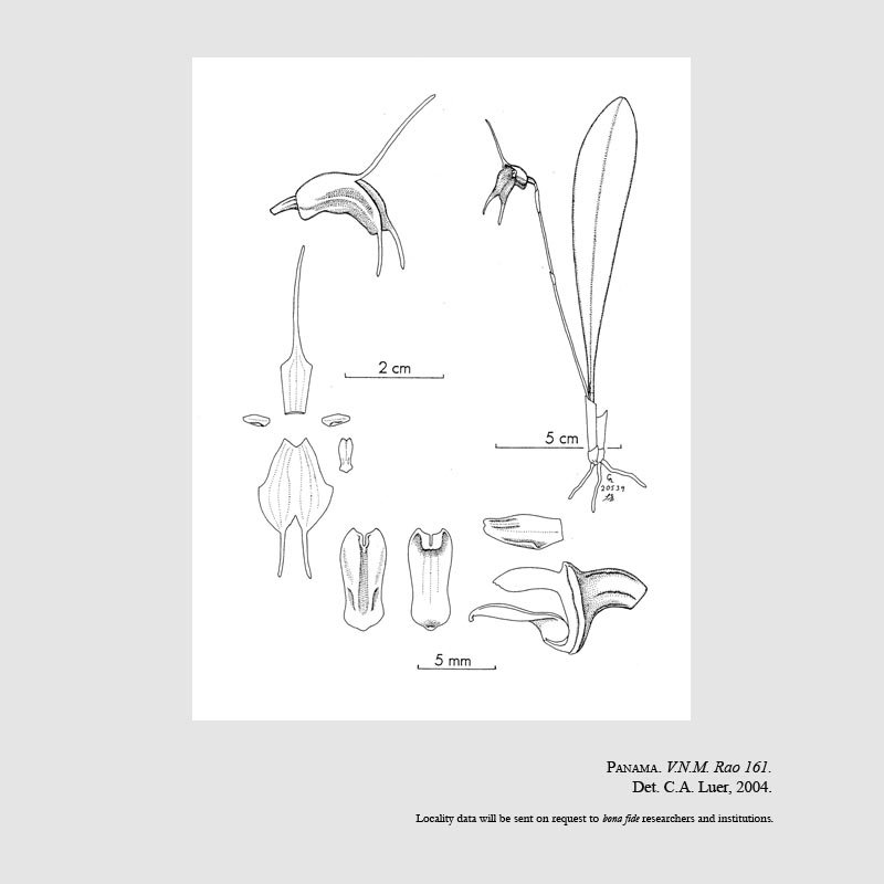 TYPE: Panama. Chiriquí: without more exact locality, alt. 1900-2000 m, collected by A. Maduro and E. Olmos, cultivated at Finca Dracula since 2000, flowered in cultivation in Wilmington, DE, 6 December 2003, V.N.M. Rao 161 (holotype, MO; illustration of type).