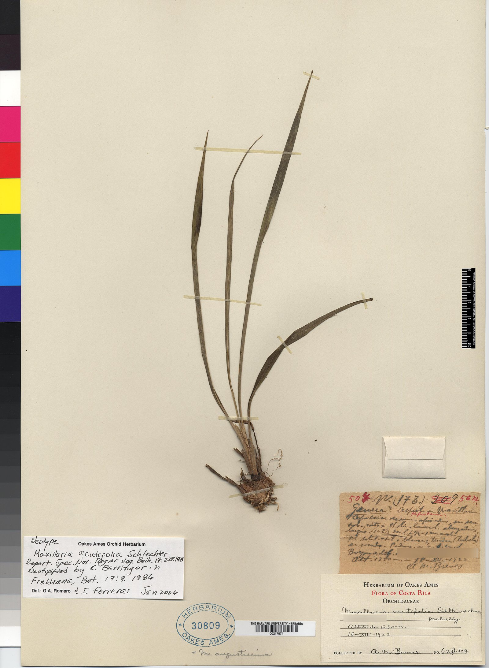 Maxillaria acutifolia Schltr., Repert. Spec. Nov. Regni Veg. Beih. 19: 229-230. 1923. nom. illeg. hom.