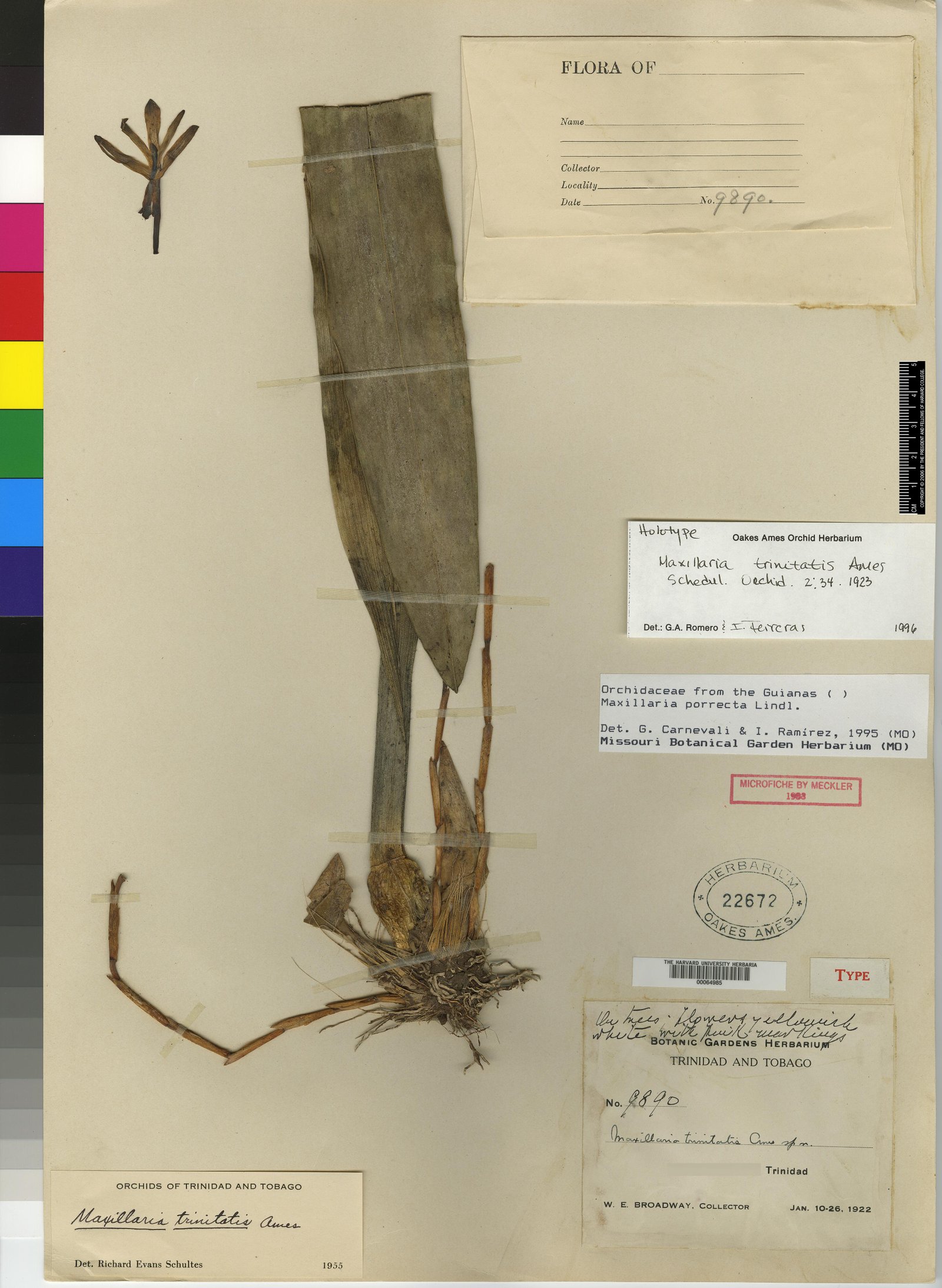 Maxillaria trinitatis Ames, Schedul. Orch. 2: 34-35. 1923.