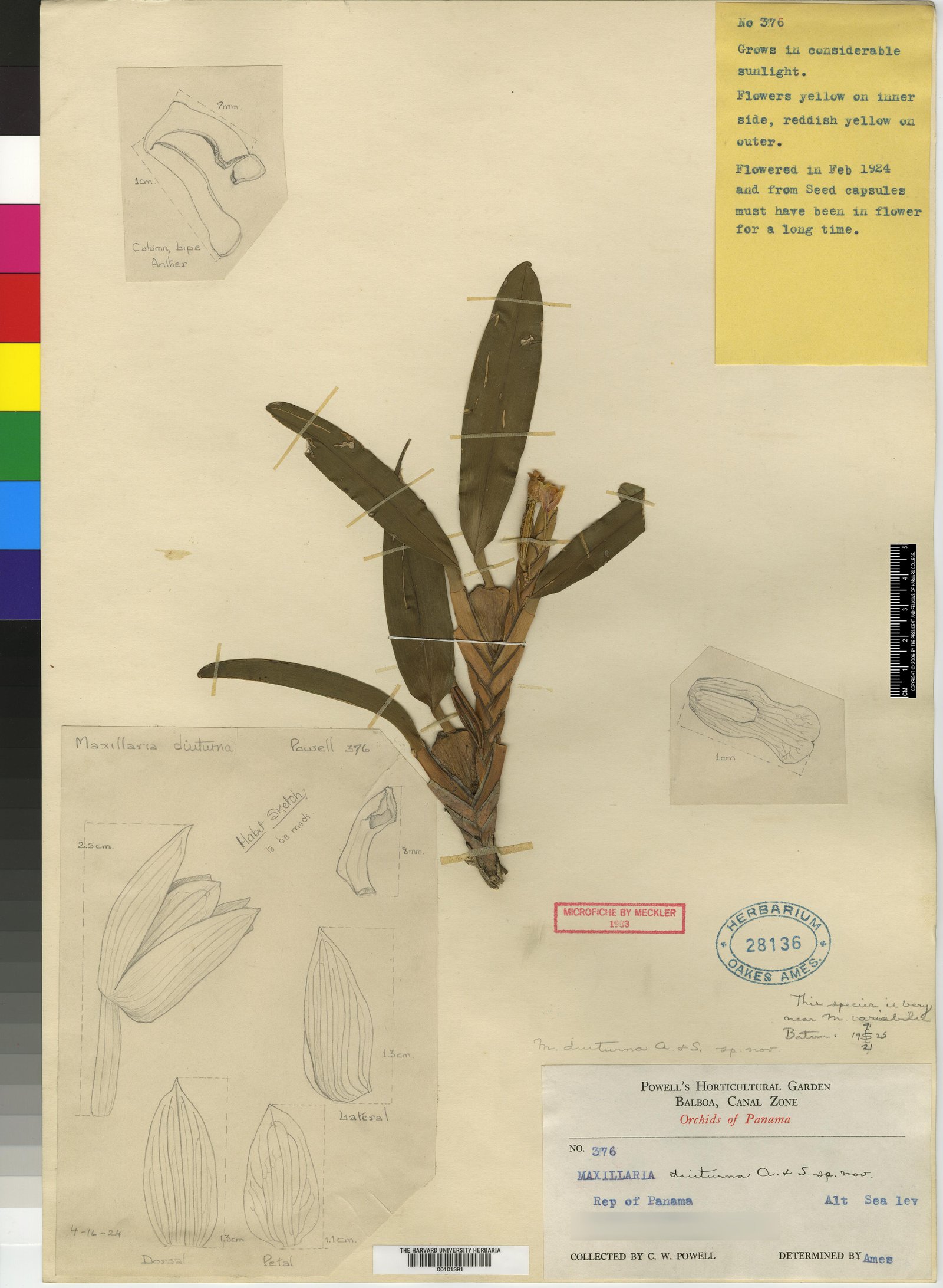 Maxillaria diuturna Ames & C. Schweinf., Schedul. Orch. 8: 58-60. 1925.