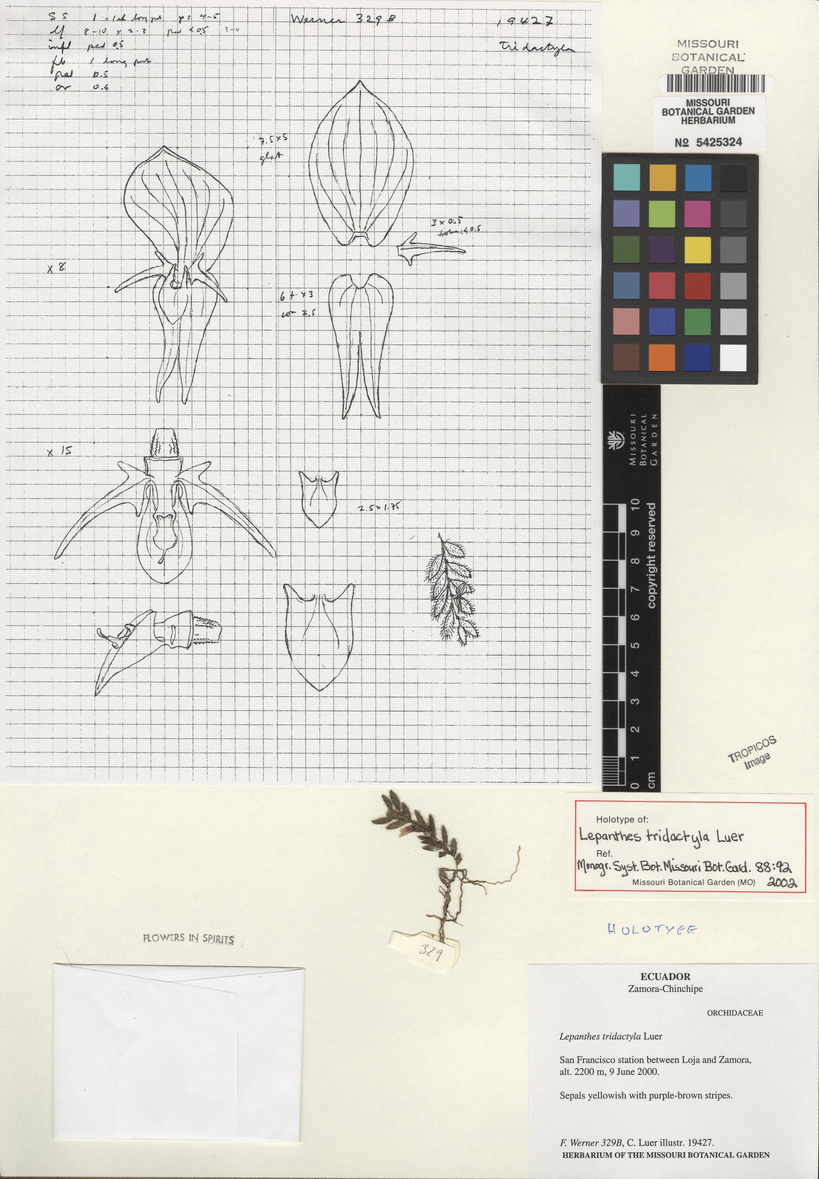 TYPE: Ecuador. Zamora-Chinchipe: San Francisco station between Loja and Zamora, 2200 m, 9 Jun 2000, F. Werner 329B (holotype and detail of the holotype, MO; illustration of type).