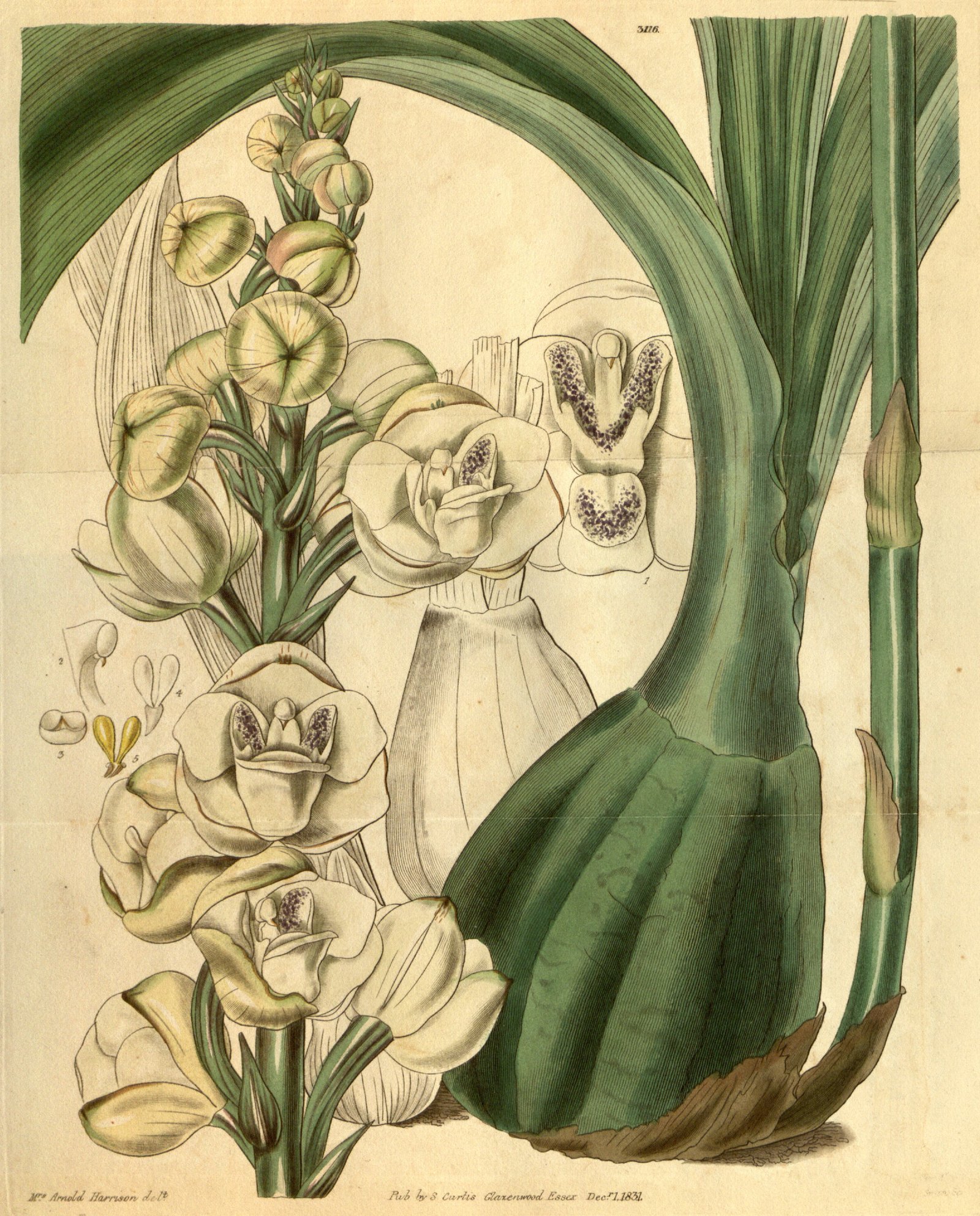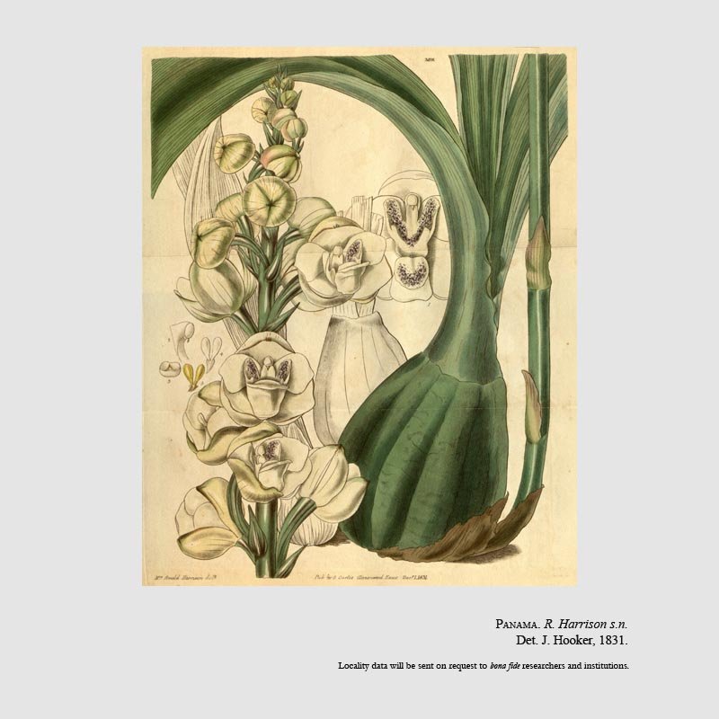 TYPE: Panama. In the year 1826, Henry Barnard, Esq. of Truxillo in Peru, communicated to Richard Harrison, Esq. of Liverpool, a bulb of a remarkable, parasitical, orchideous plant, which he had found in the neighbourhood of Panama (holotype, K; illustration of type).