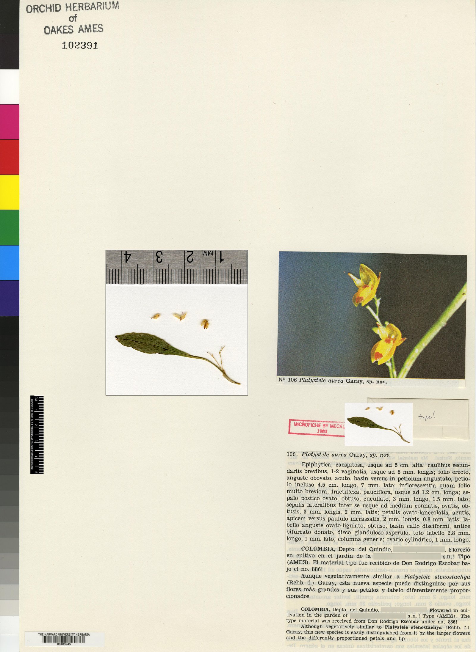 Platystele aurea Garay, Orquideología 8(3): 182. 1973.