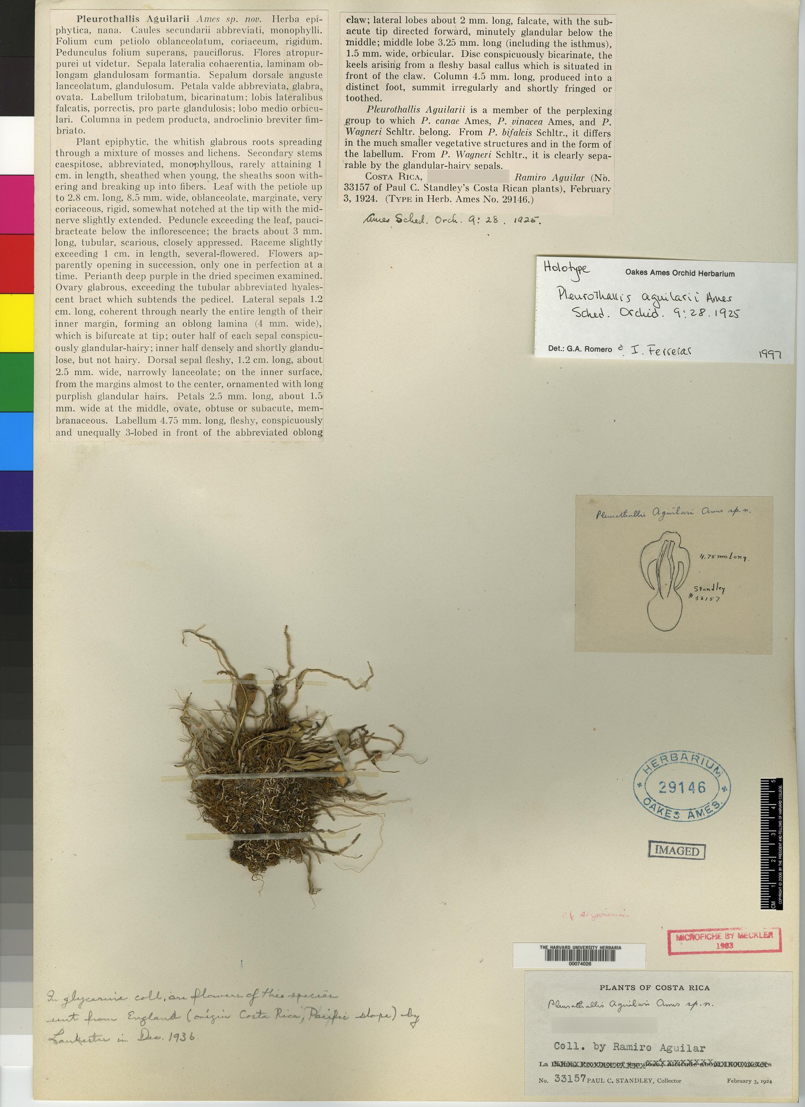 Pleurothallis aguilarii Ames, Schedul. Orch. 9: 28-29. 1925.