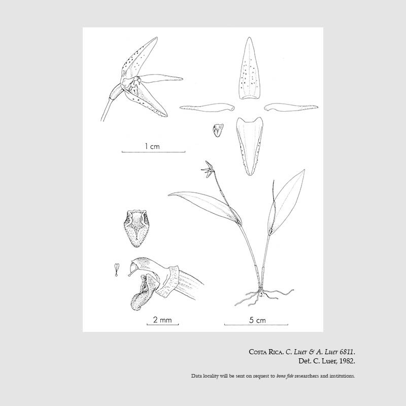 TYPE: Costa Rica. Alajuela: epiphytic in felled trees below the Monteverde Preserve, alt. 1400 m, 24 Jun 1981, cultivated at SEL, flowered in cult. 28 Jan 1982, C. Luer & A. Luer 6811 (holotype, SEL; illustration of type).