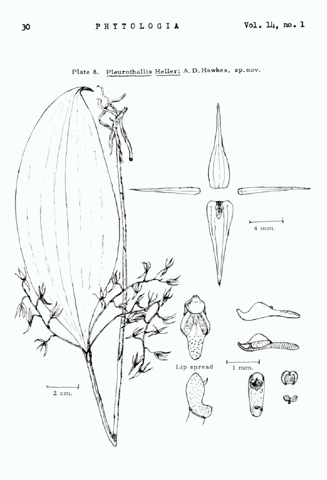 Pleurothallis helleri A.D. Hawkes, Phytologia 14(1): 12-14, t. 8. 1966.
