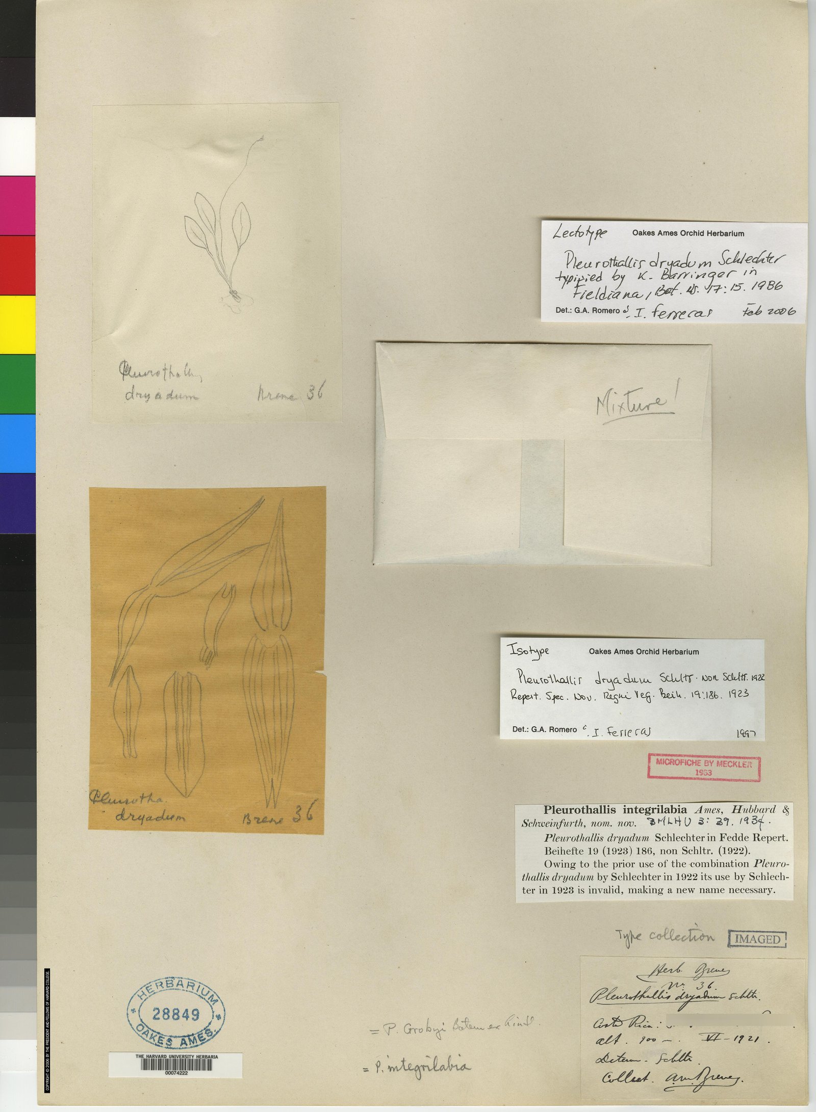 Bas.: Pleurothallis dryadum Schltr., Repert. Spec. Nov. Regni Veg. Beih. 19: 186-187. 1923. nom. illeg. hom. non Pleurothallis dryadum Schltr. 1922.
