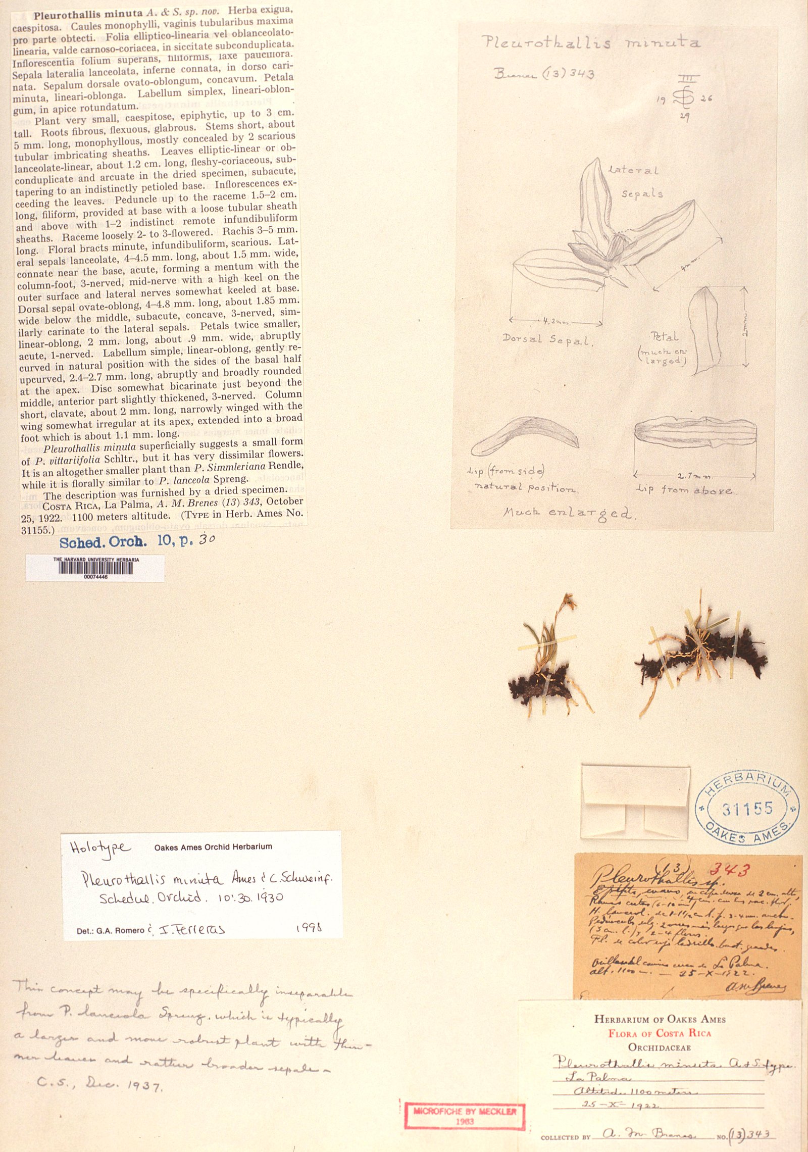 Bas.: Pleurothallis minuta Ames & C.Schweinf., Schedul. Orchid. 10: 30. 1930.