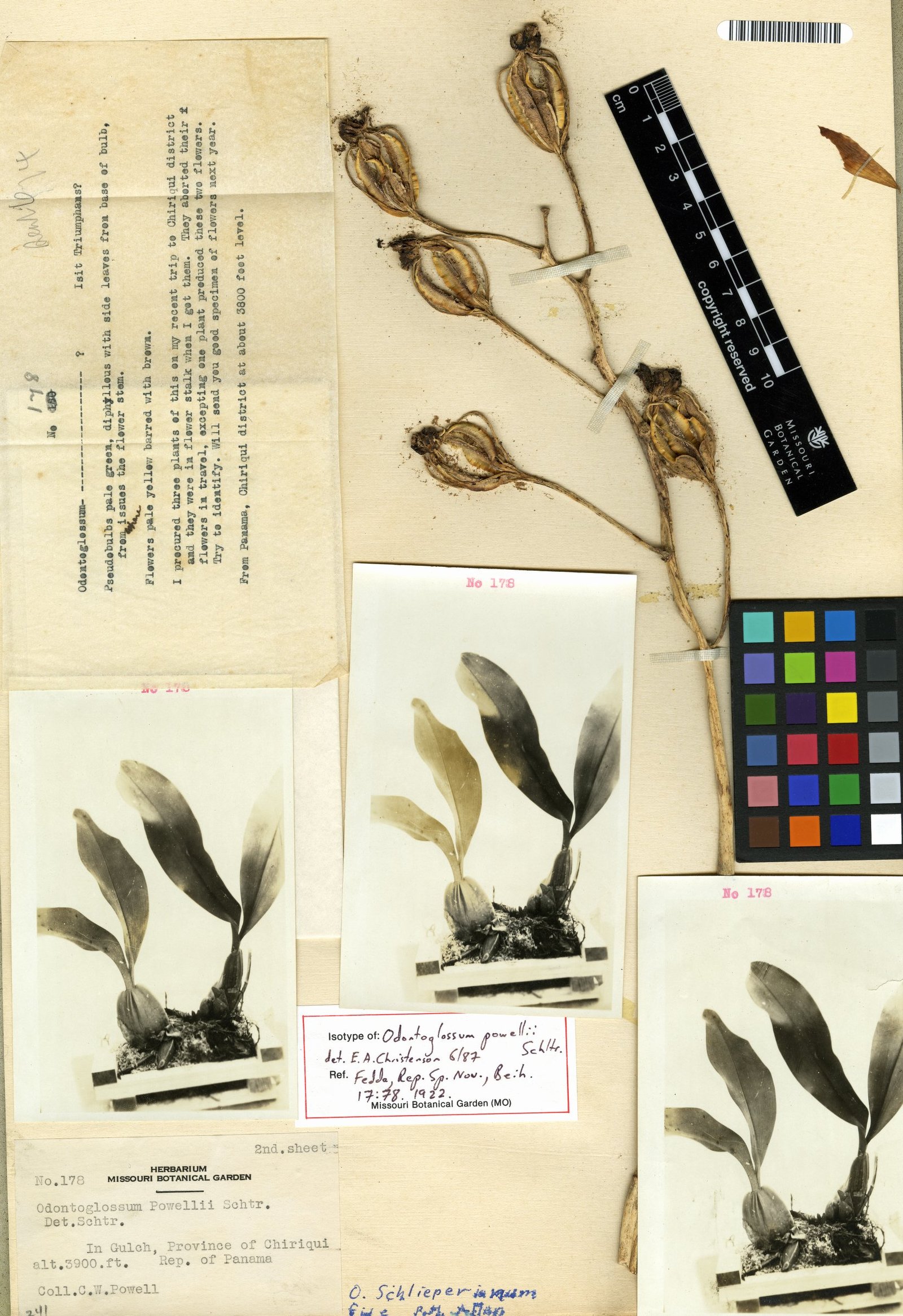 Bas.: Odontoglossum powellii Schltr., Repert. Spec. Nov. Regni Veg. Beih.17: 78–79. 1922.