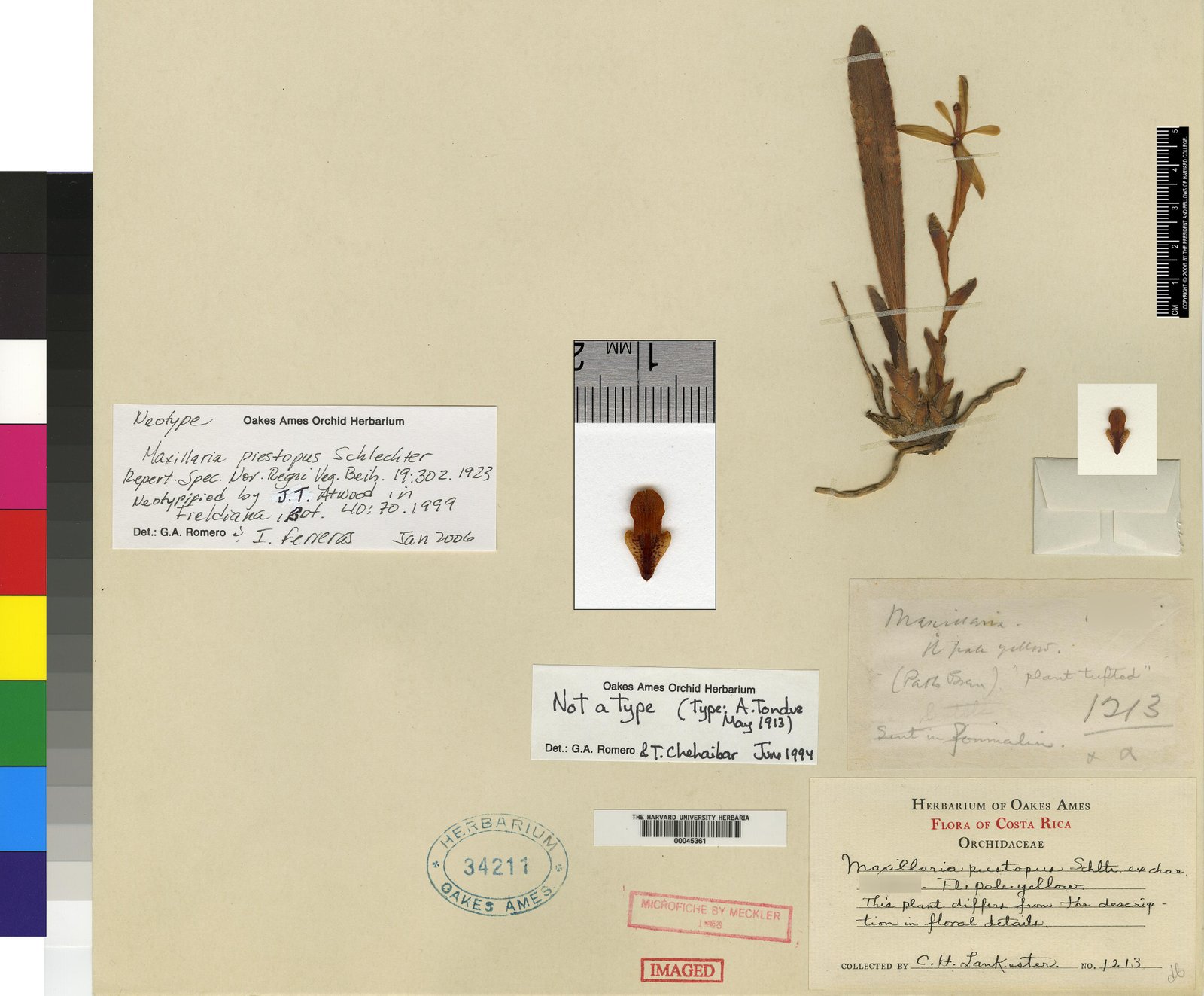 TYPE: Costa Rica. Alajuela: San Ramon, May 1913, A. Tonduz s.n. (holotype, B, destroyed; photo and illustration of type, AMES; neotype designated by Atwood (1999) Costa Rica. Cartago: Orosi, C.H. Lankester 1213, AMES).