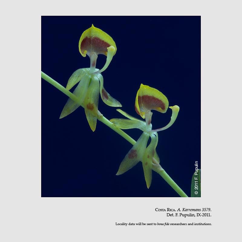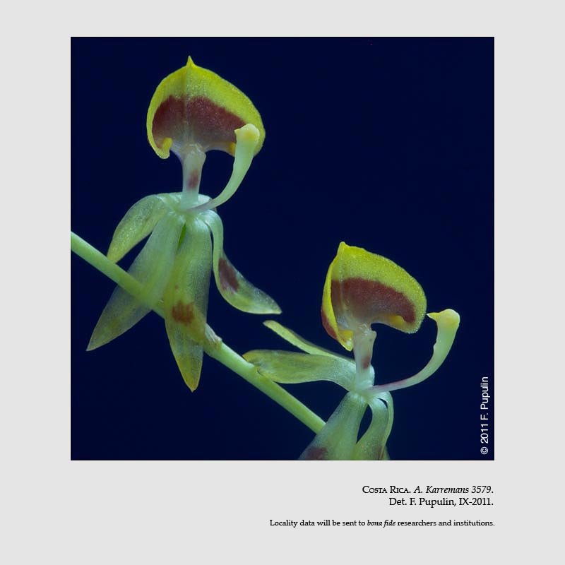TYPE: San José: Pérez Zeledón, San Ramón Norte, trail to Cerro Pelón, 9°25'N 83°44'W, 1050 m, lower montane moist forest, secondary mature and primary vegetation, collected by J. Cambronero and F. Pupulin, flowered in cultivation, 3 December 2001, F. Pupulin 3499 (holotype, USJ; illustration of type).