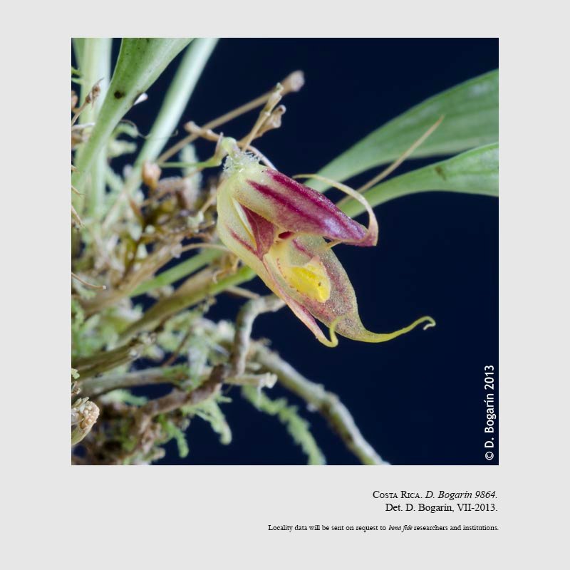 TYPE: Puntarenas-Chiriquí: Coto Brus-Renacimiento, línea fronteriza hacia el Cerro Pando, después del mojón N.338, 8°55’11.22” N 82°43’18.18” W, 2446 m, bosque muy húmedo montano bajo, epífita en bosque primario, “in sylvis virginis versus montium Pando in itinere ad summum Costa Rica austro-orientalis in finibus utrimque Costa Rica et Panama”, 19 April 2011, D. Bogarín 8711, D. Jiménez & A. Karremans (holotype, CR; isotypes, JBL, PMA, UCH, USJ; illustration of type).
