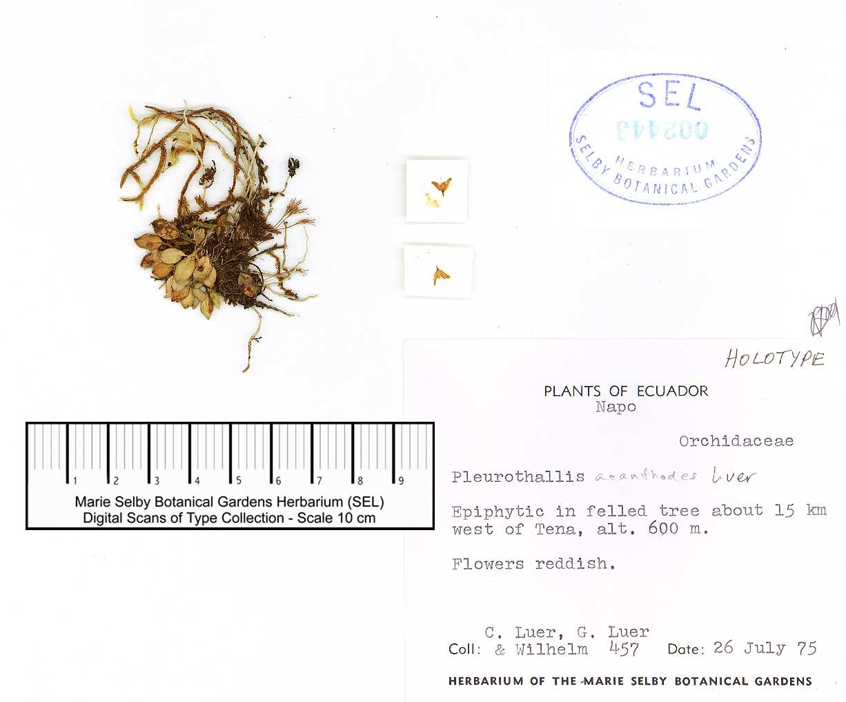 TYPE: Ecuador. Napo: epiphytic about 15 km west of Tena, alt. 600 m, 26 July 1975, C. Luer, G. Luer & Wilhelm 475 (holotype, SEL; illustration of type).