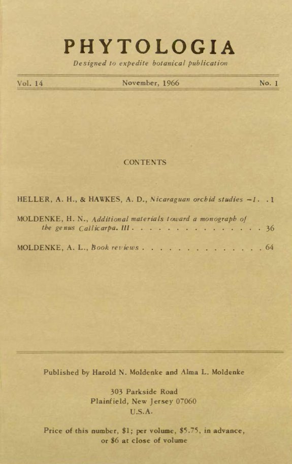 Heller, A. H. & A. D. Hawkes. 1966. Nicaraguan orchid studies I. Phytologia 14(1): 1-35.