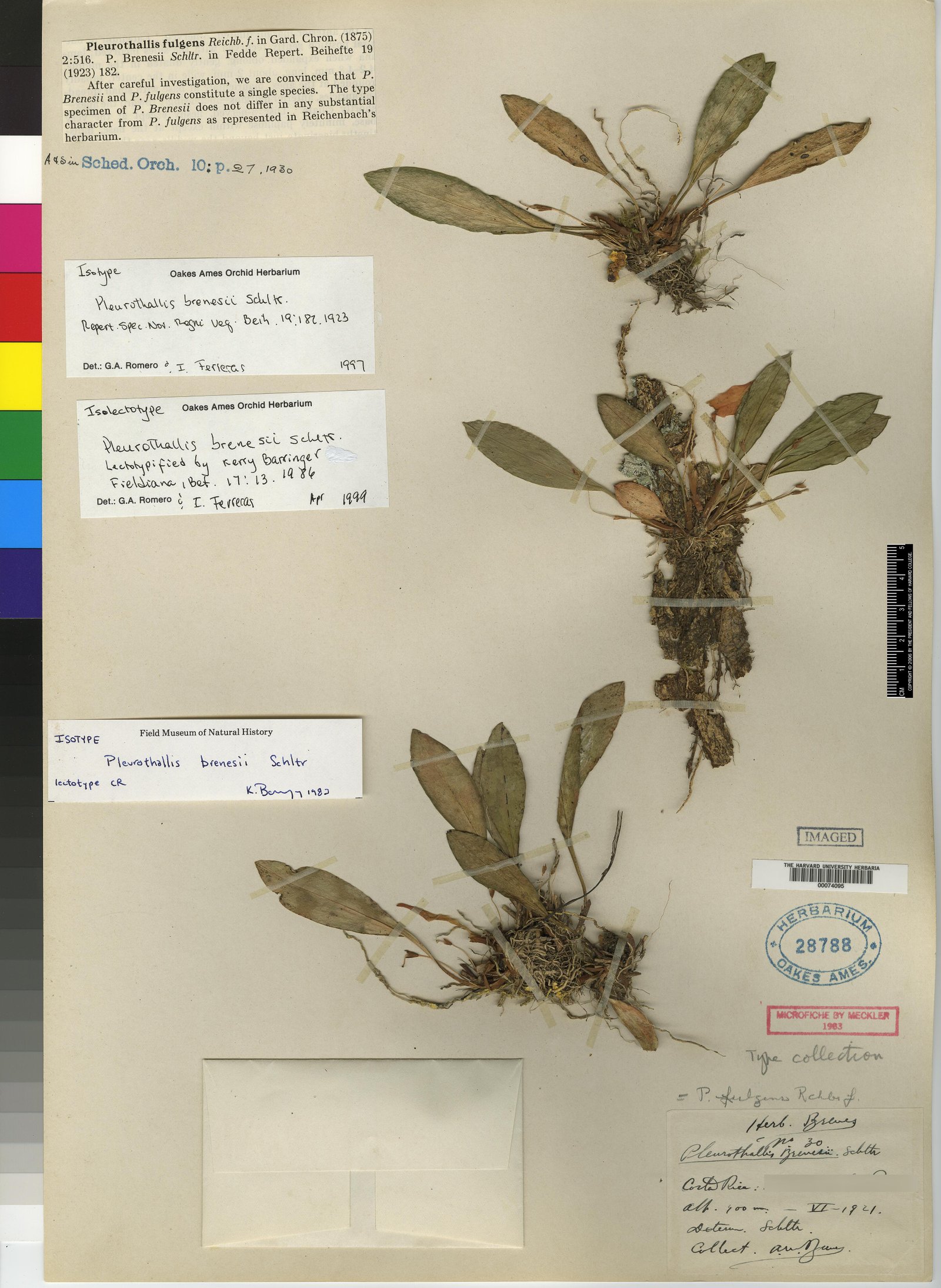 Pleurothallis brenesii Schltr., Repert. Spec. Nov. Regni Veg. Beih. 19: 182-183. 1923.