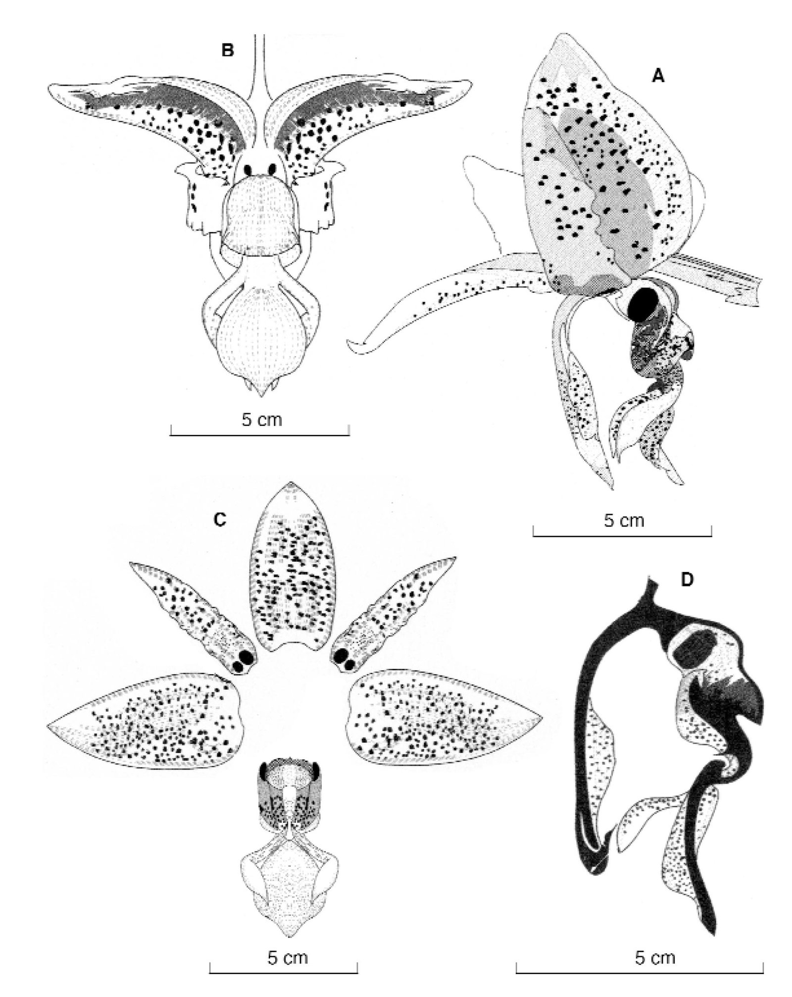 Stanhopea confusa G. Gerlach & Beeche, Lankesteriana 4(3): 217–221, f. 6, 7A–D, 8, 9. 2004.