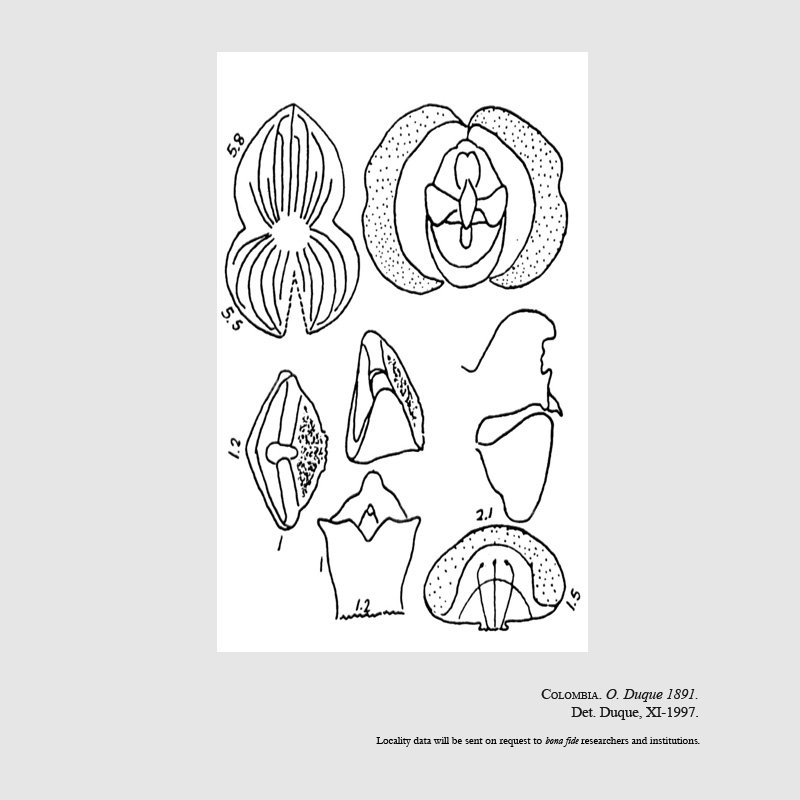 TYPE: Colombia. Antioquia, municipio de Frontino alt. ca. 2200 m, Francisco Villegas mayo 1995. Florece en cultivo diciembre 13, 1995. O. Duque 1891 (holotype, JAUM; ilustration of type).