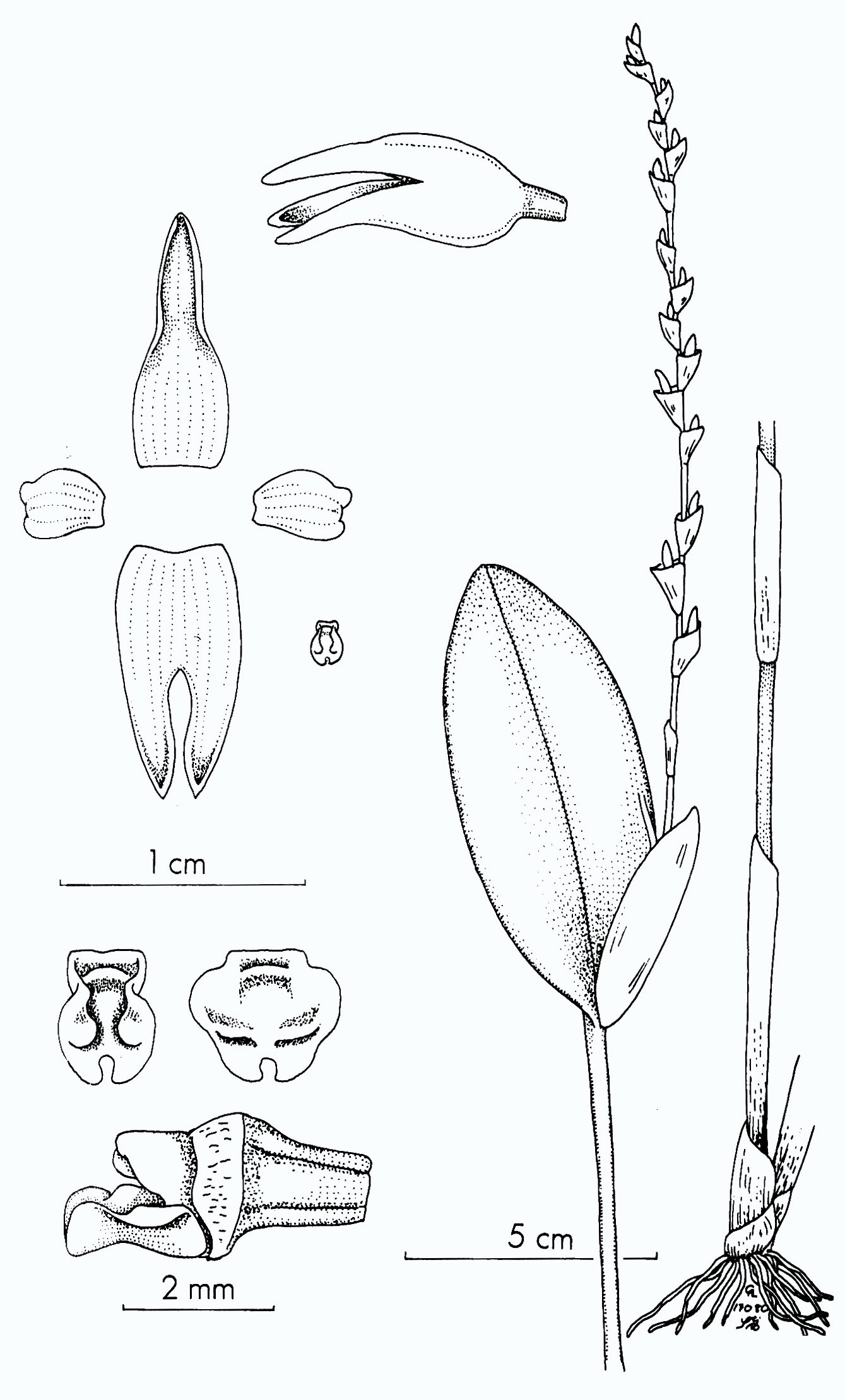 TYPE: Colombia. Dept. of Santander, epiphytic in cloud forest west of Galán, Cerro Guicha, headwaters of Quebrada Chiriviti, alt. 8500 ft, 8 Sept. 1944, N. C. Fassett 25732 (holotype, US; ilustration of type).