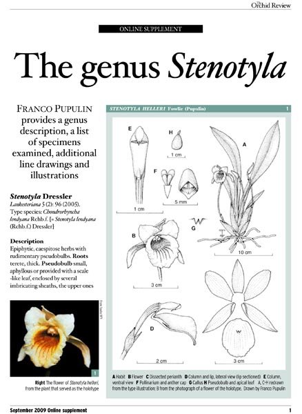 Pupulin, F. 2009. The genus Stenotyla. Orchid Rev. 117:Online Supplement 1-8.