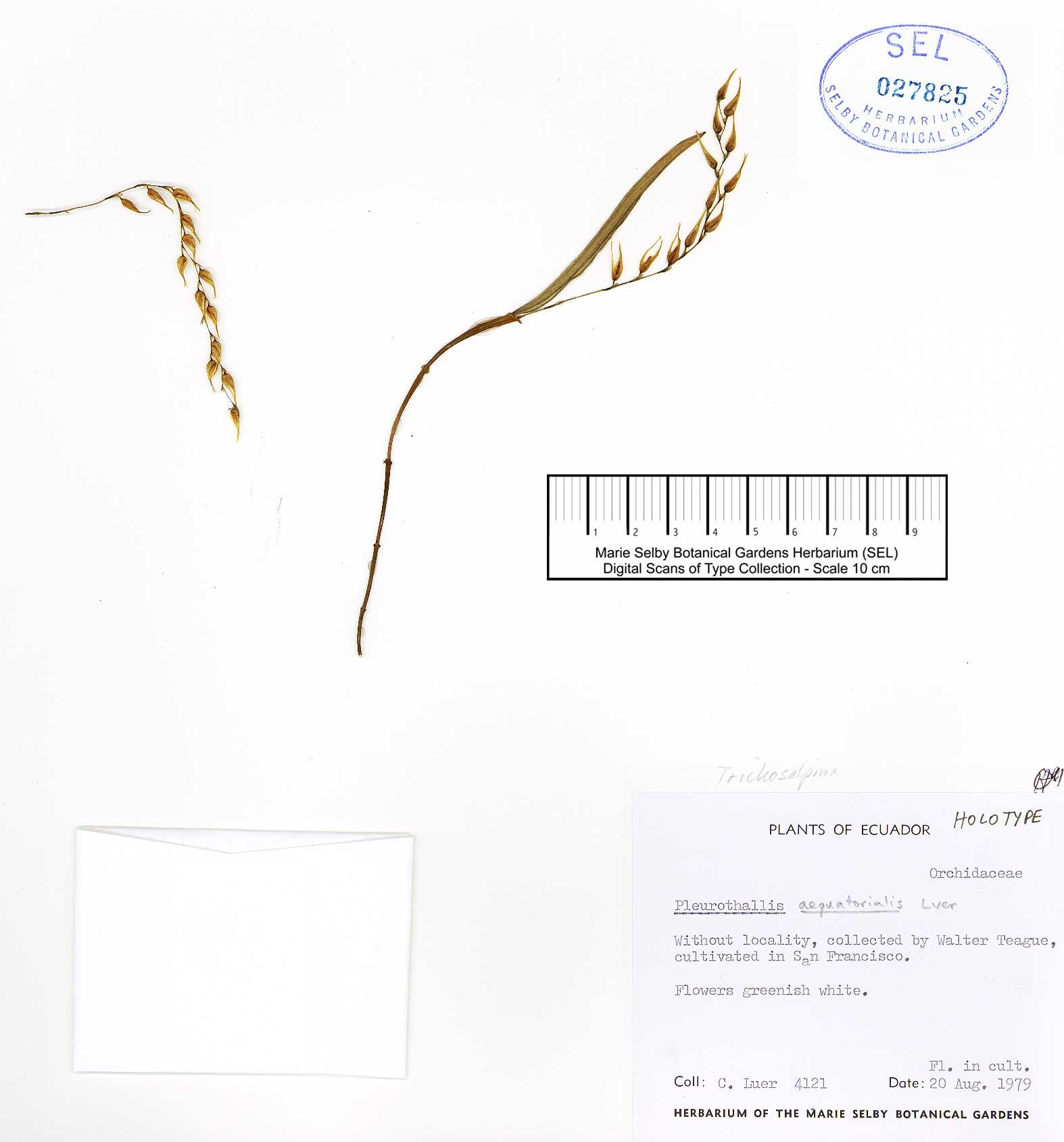 TYPE: Ecuador. Without locality, collected and cultivated by W. Teague of San Francisco, CA, flowered in cult. 20 Aug 1979, C. Luer 4121 (holotype, SEL).