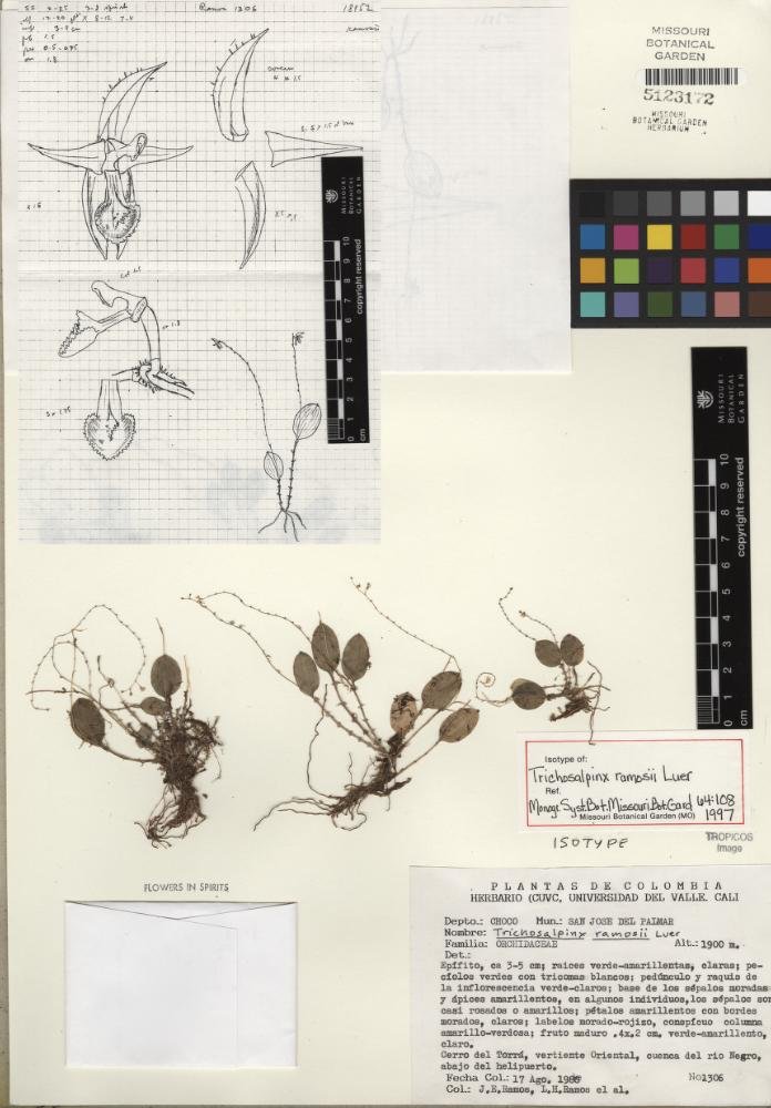 Trichosalpinx ramosii Luer, Monogr. Syst. Bot. Missouri Bot. Gard. 64: 108, f. 98. 1997.