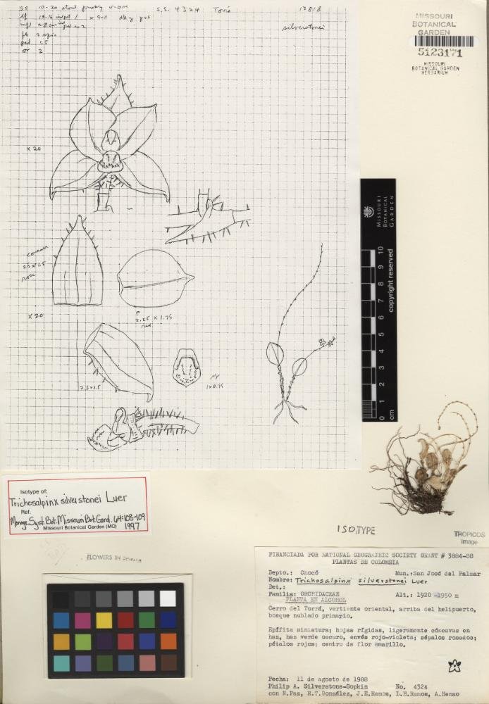 Trichosalpinx silverstonei Luer, Monogr. Syst. Bot. Missouri Bot. Gard. 64: 108, f. 99. 1997.