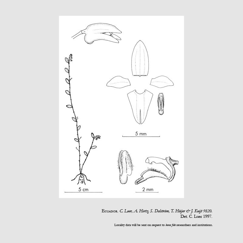 TYPE: Ecuador. Zamora-Chinchipe: epiphytic in cloud forest above Valladolid, alt. 2000 m, 18 Mar 1984, C. Luer, A. Hirtz, S. Dalström, T. Höijer & J. Kuijt 9820 (holotype, MO; illustration of type).
